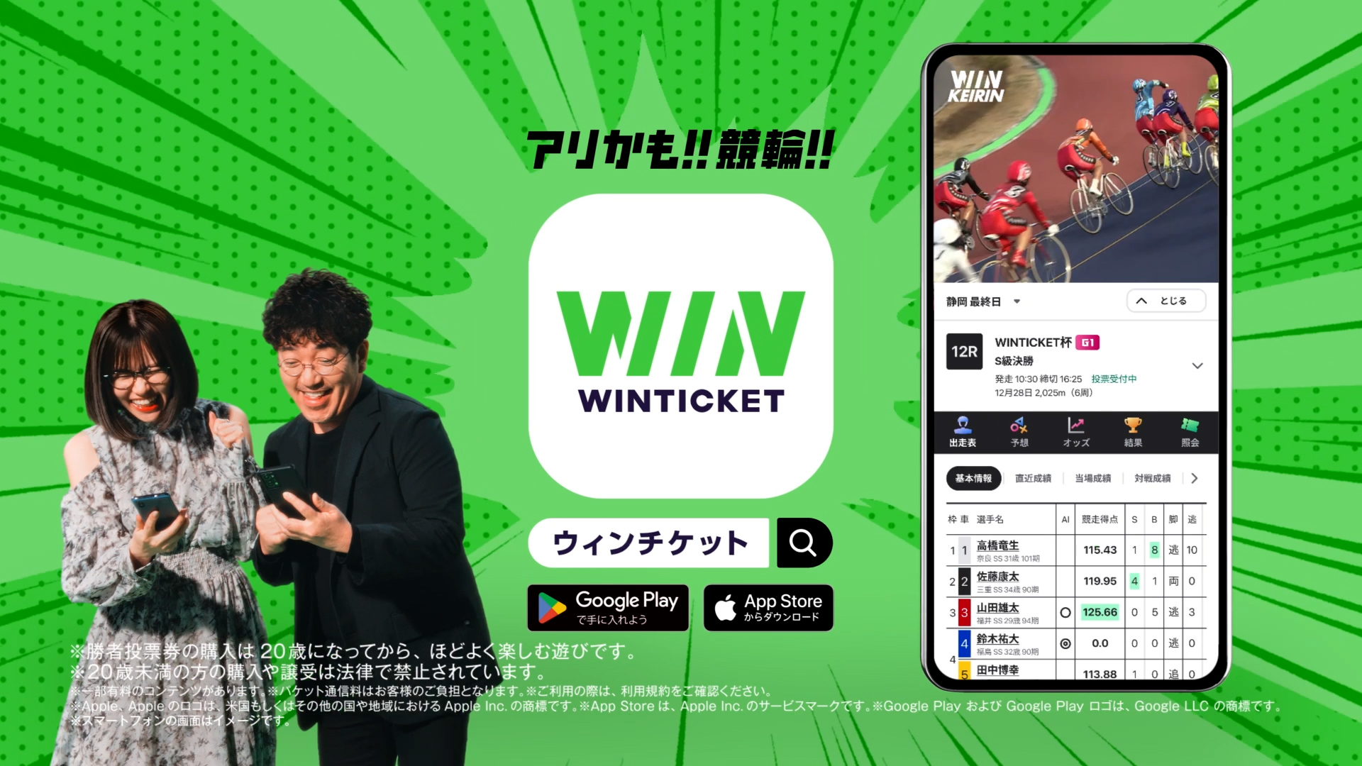 WINTICKETさんの新CMには、人気パチンコYouTuberの木村魚拓さんと青山りょうさんがご出演。