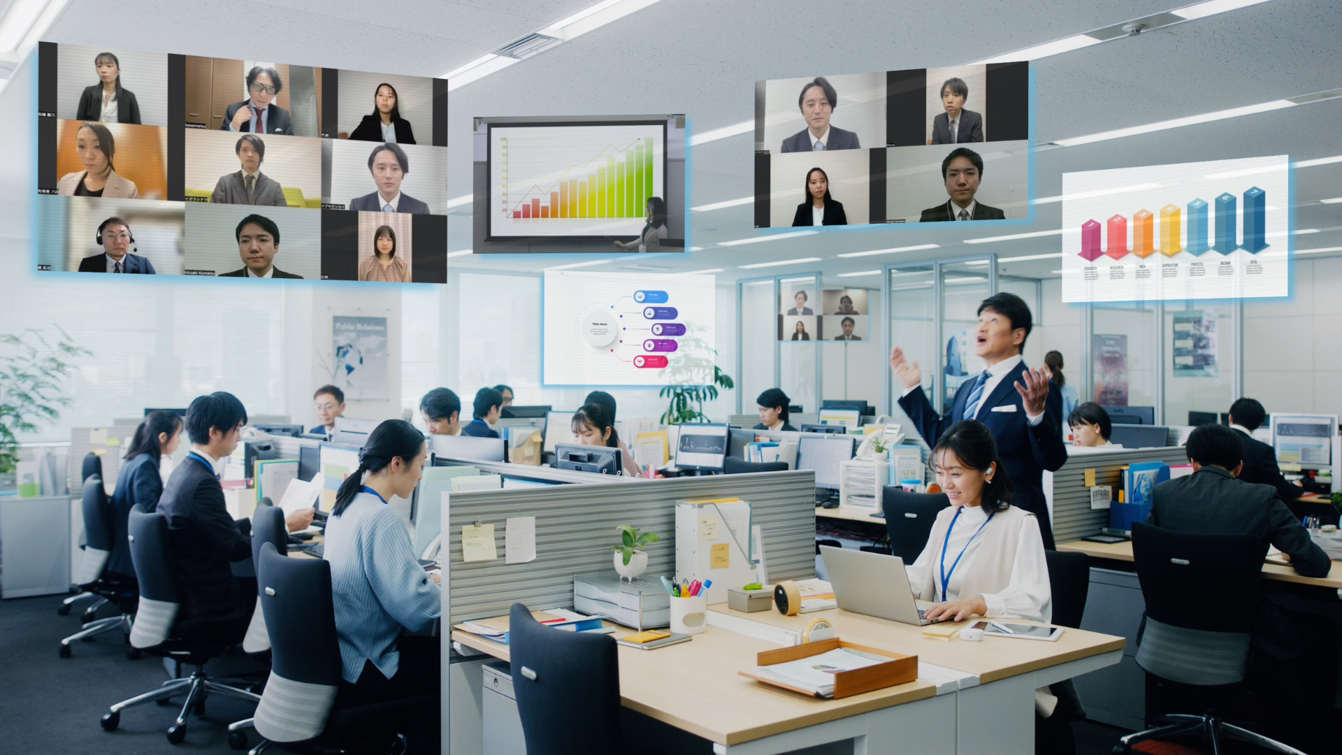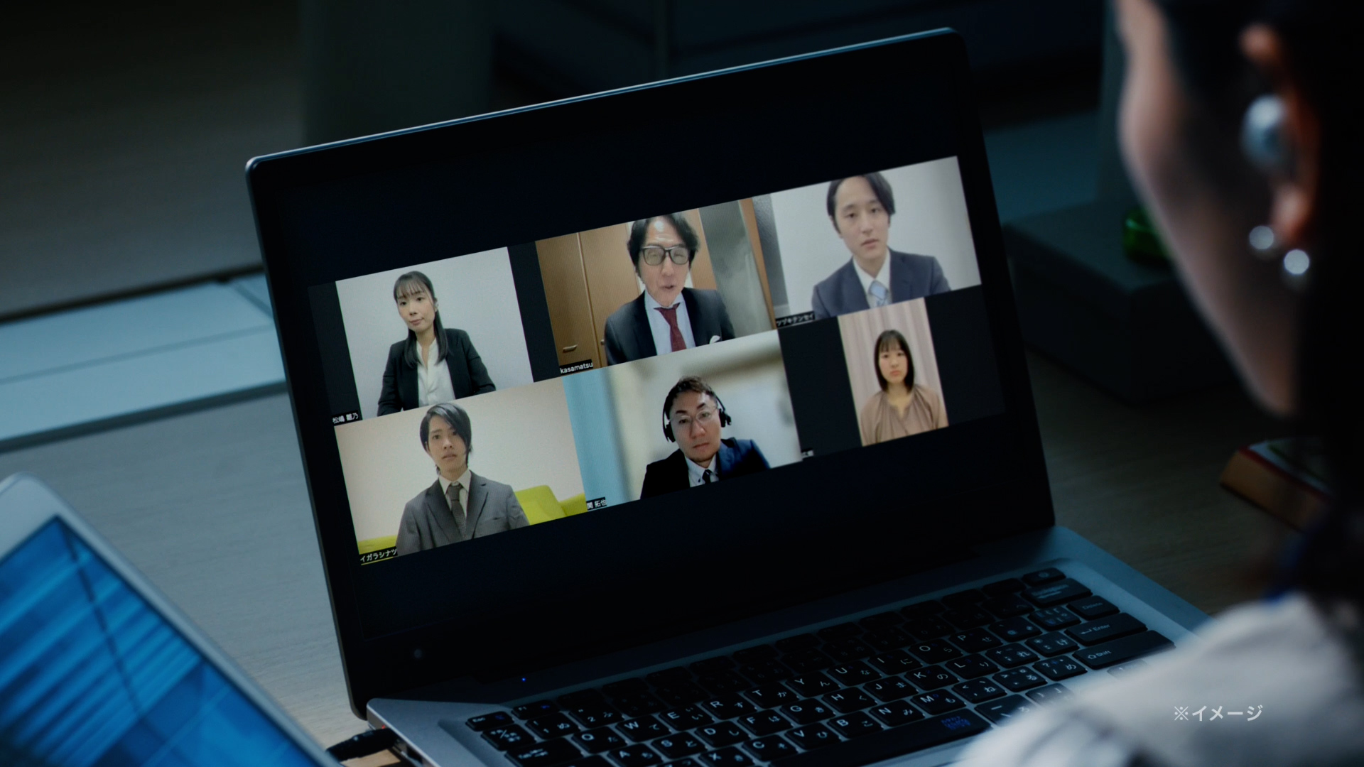 TVCMでは、オンライン打ち合わせの動画は後から見返せる便利さはあるものの、どこでその話しをしていたかを探したり、要約することは難しい。