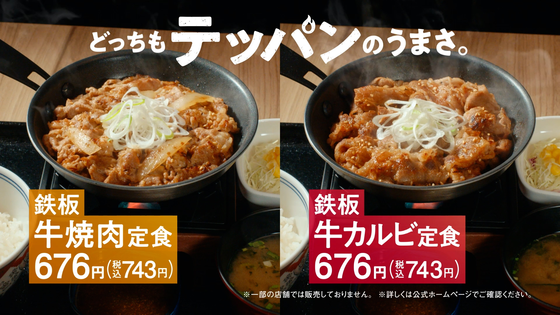 吉野家さんの新CMは、「鉄板牛焼肉定食」と「鉄板牛カルビ定食」