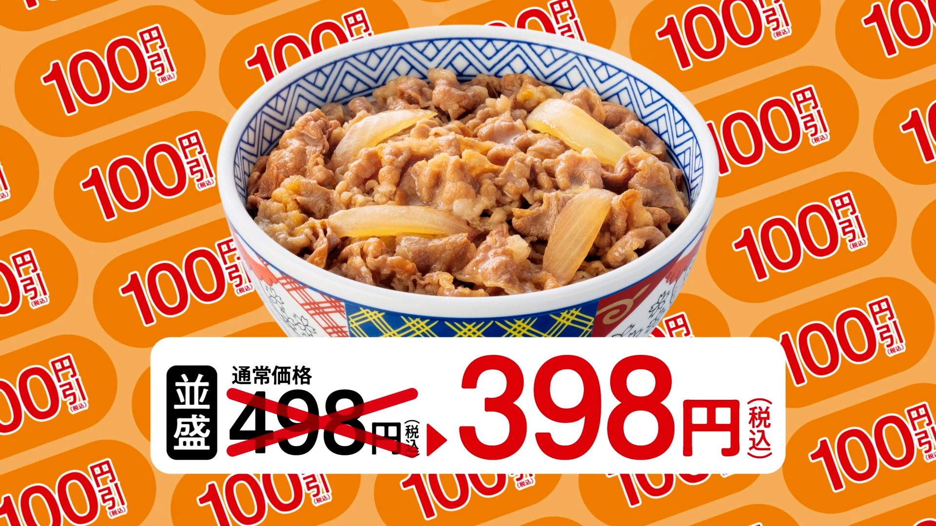 牛丼がなんと100円引き!もちろんテイクアウトでも!