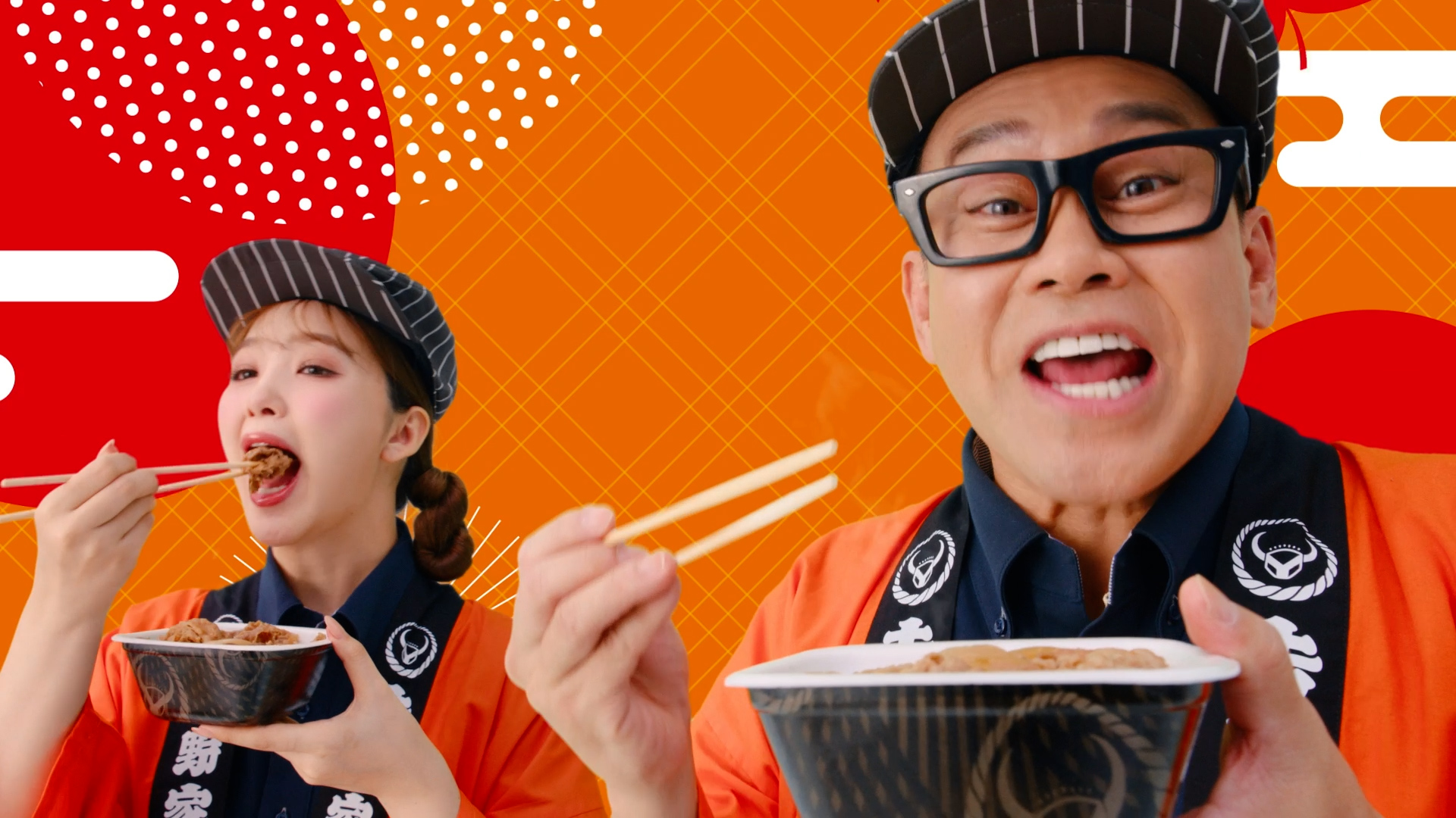今回は、秋っぽく、さらに吉野家さんらしい、オレンジと赤の背景アニメーションと共にお知らせです!