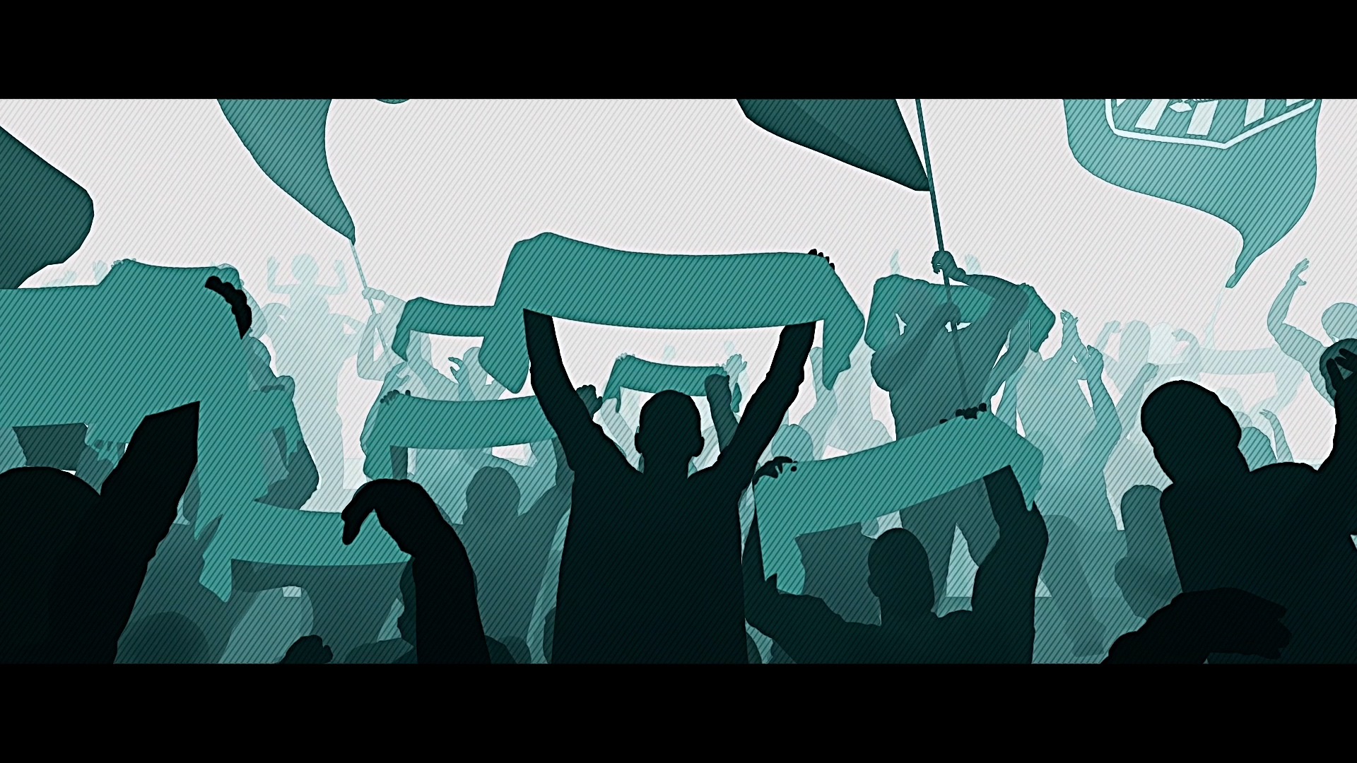 オープニングは、選手入場の際に、ベンチで気合を入れるチームと、サポーターにはこうやって入ってくる選手を盛り上げてほしいというメッセージを込めたアニメーションになっています!