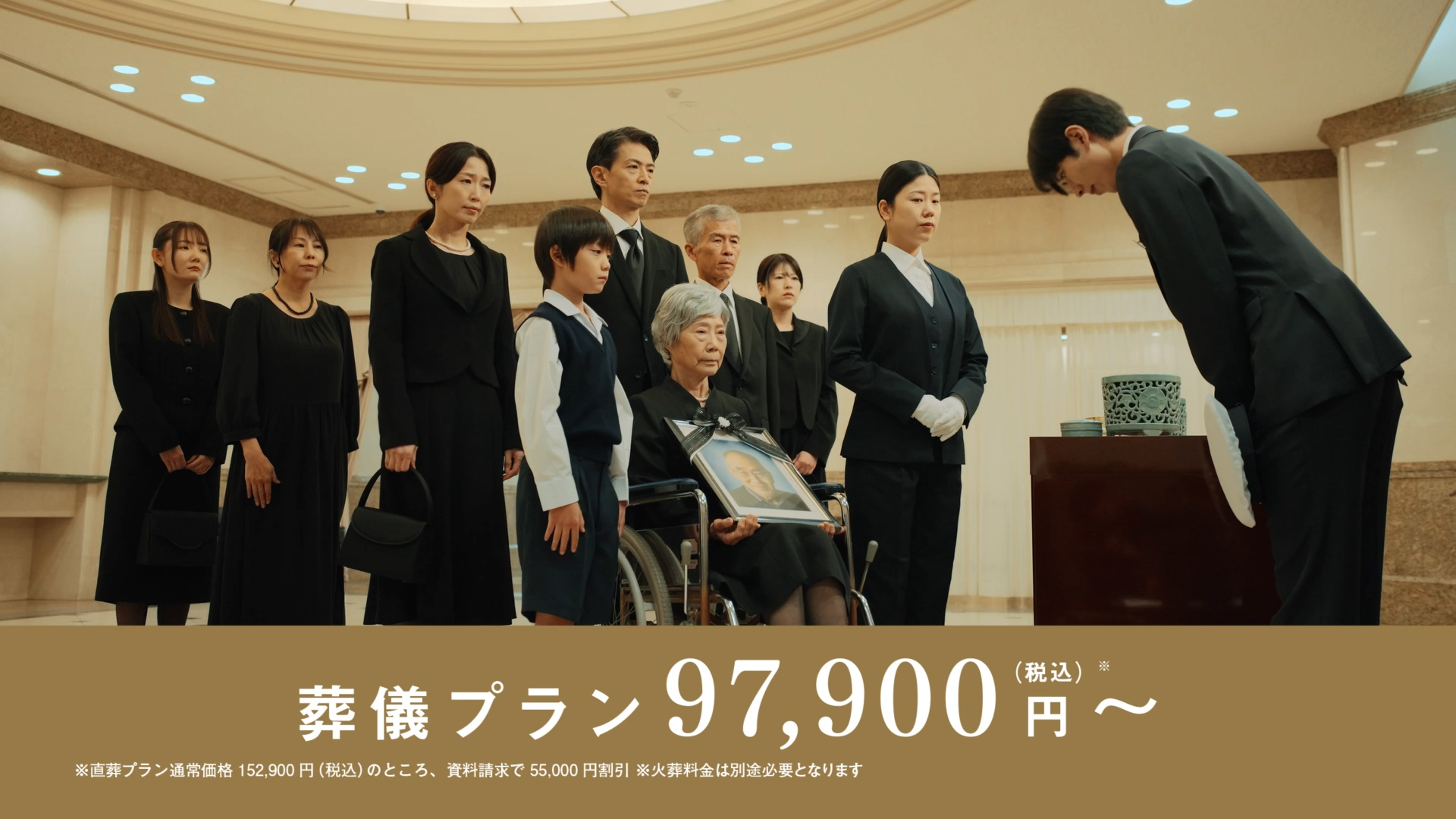 TVCMでは、斎場と火葬場が別の場所で移動に課題を持つお葬式が多い中、
