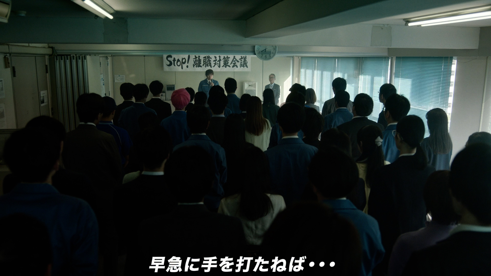 従業員役、4人を兼近さんが髪の色を変えて演じ分け、離職防止策のアイディアを出すコミカルなCMになっています!