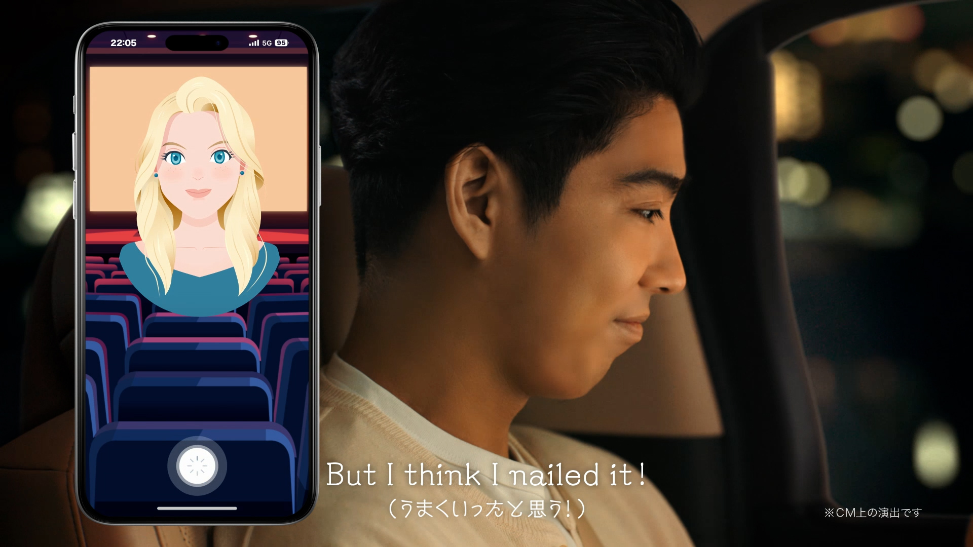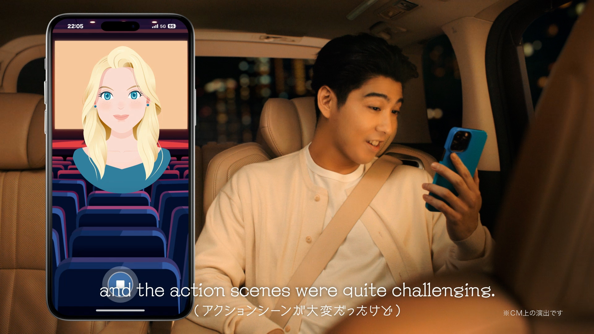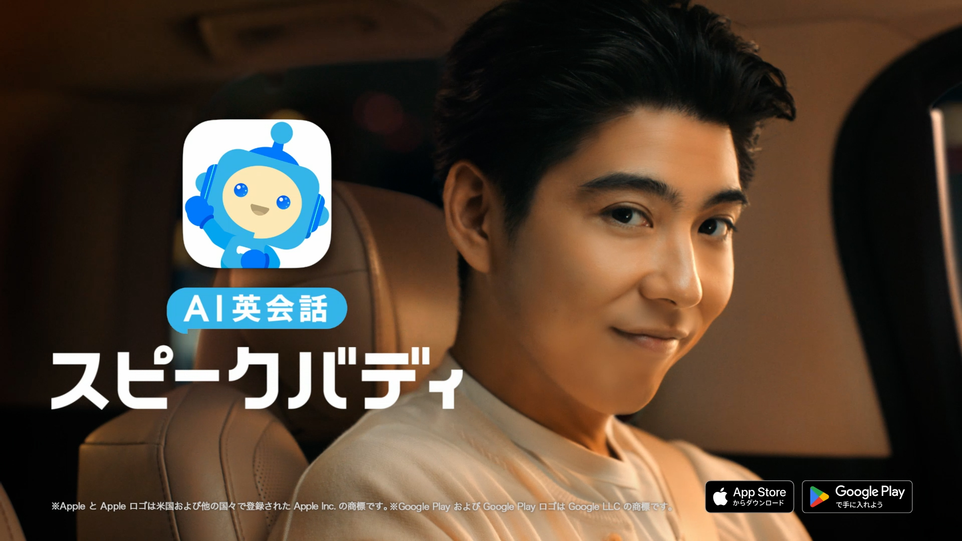 新CMでは、俳優の賀来賢人さんが仕事終わりの移動中にAIバディと英会話を楽しむ様子が描かれています。