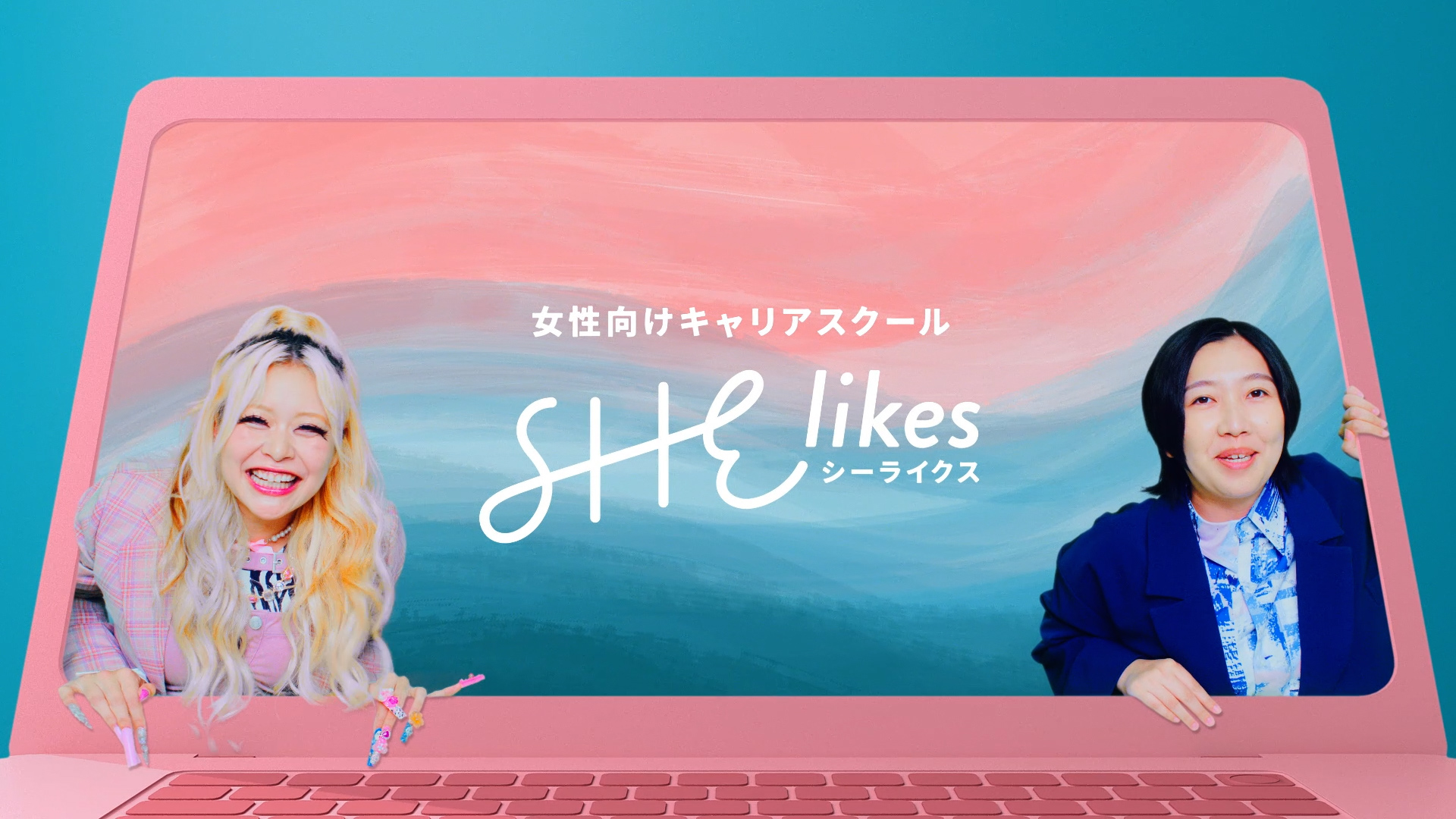 女性向けキャリアスクールSHElikes新CMは、人気お笑いコンビ、エルフさんにご出演いただきました。
