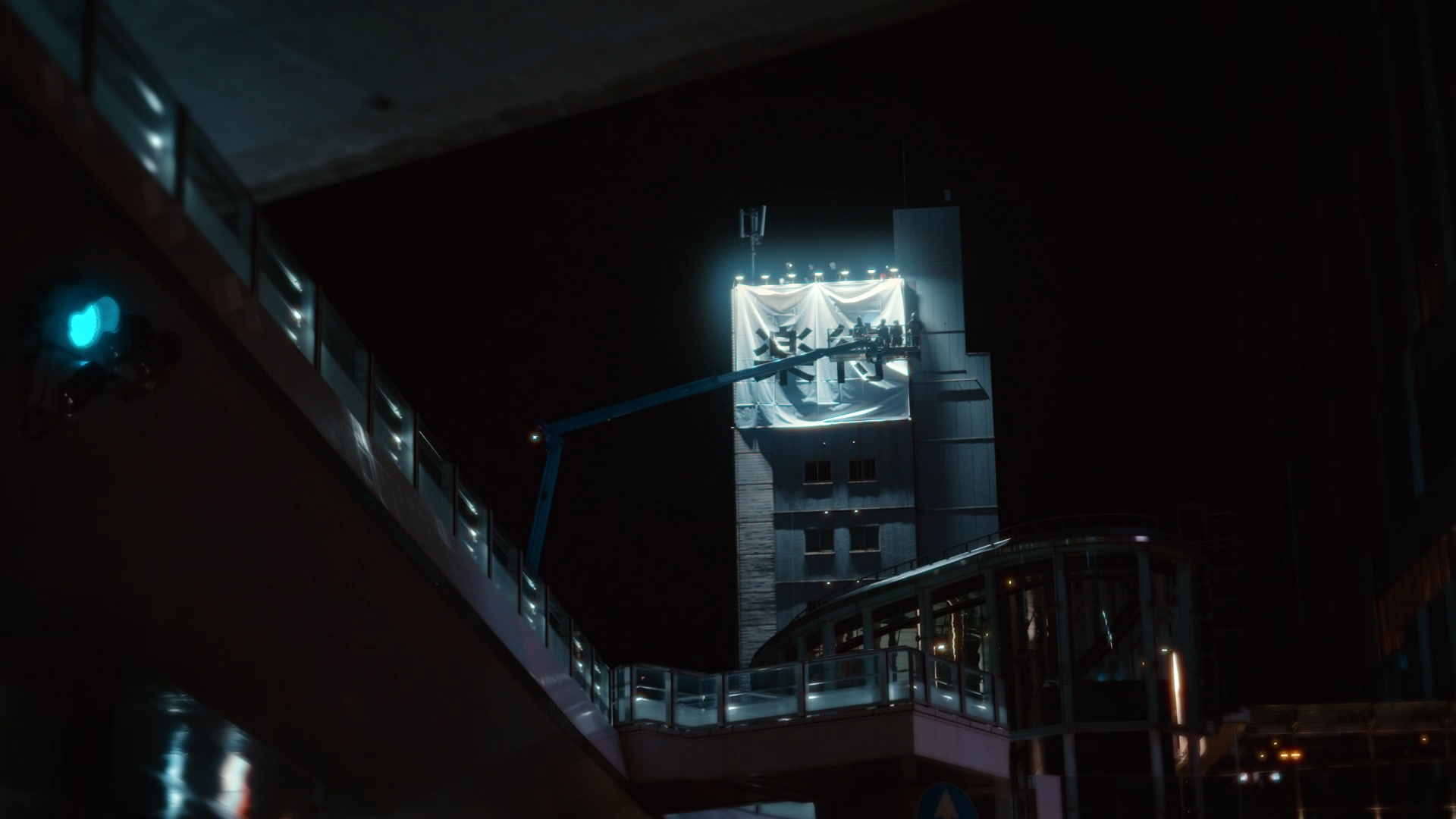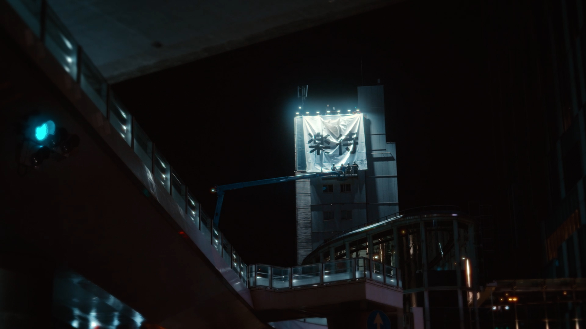 なかなか見る機会のない街の大型看板を設置している様子をそのままCMに。という大胆な企画です。