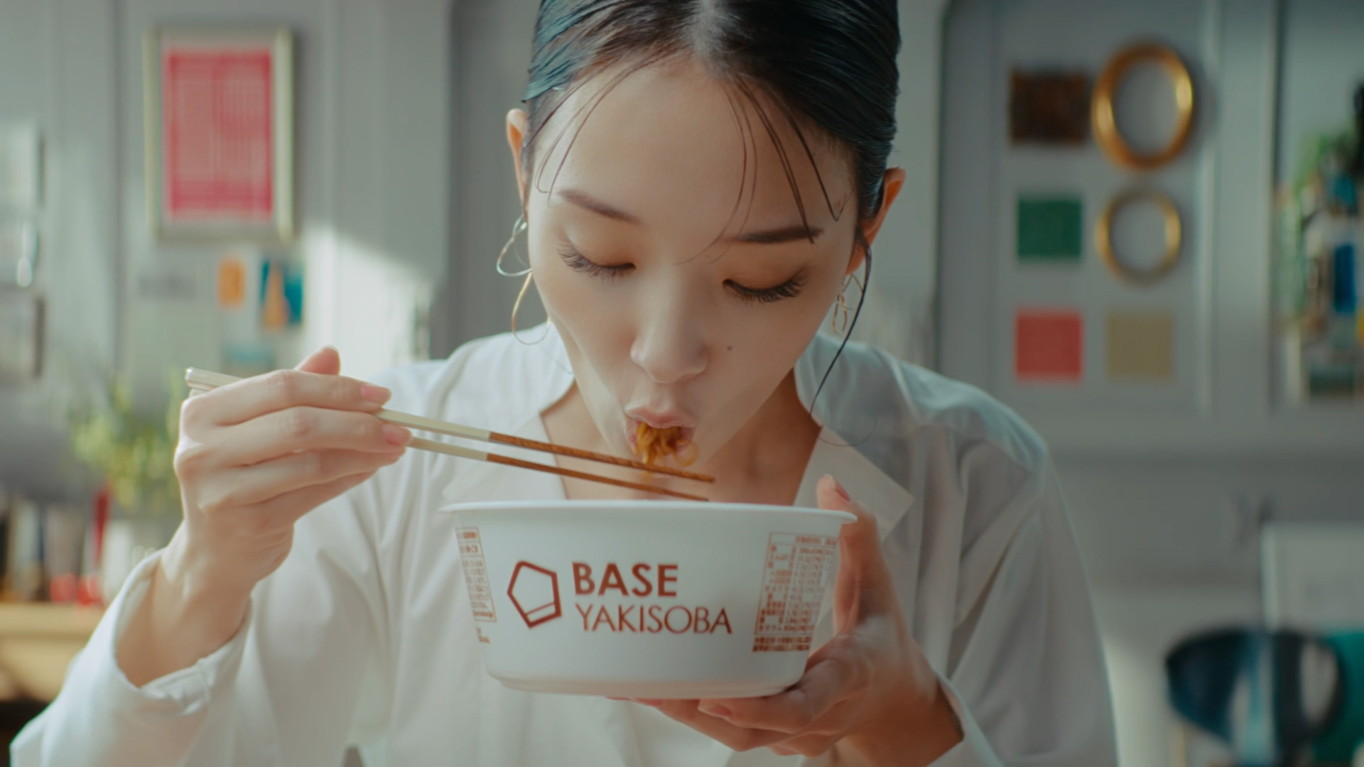 俳優・モデルの剛力彩芽さんが、フランス風の部屋の中で「BASE YAKISOBA」を優雅に、そして豪快に食べるシーンを是非お楽しみいただき、