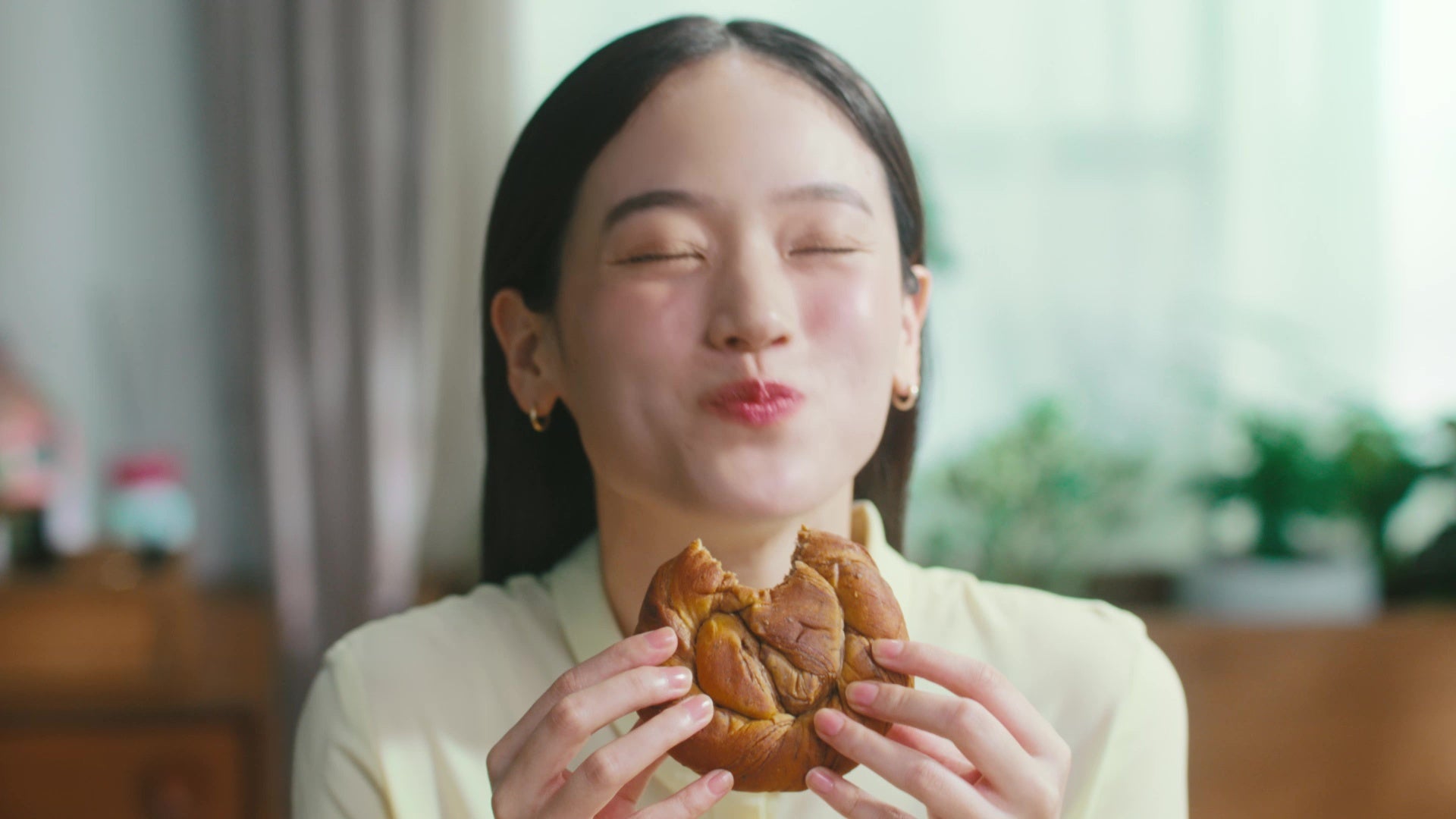 テーブルの上に並んだトーストやヨーグルト、おにぎりなどの定番メニューが、くるりと回転するような仕掛けでBASE BREADに変わっていく演出を通して、“手間はそのまま、栄養だけアップする”感覚をビジュアル化しました。モデルの清音さんが、栄養バランスの整った朝食で1日を元気にスタートさせる様子を、軽快な音楽とテンポの良いカット割りで見せることで、「おきかえで、パフォーマンスUP」というコンセプトをストレートに伝えるCMになっています。